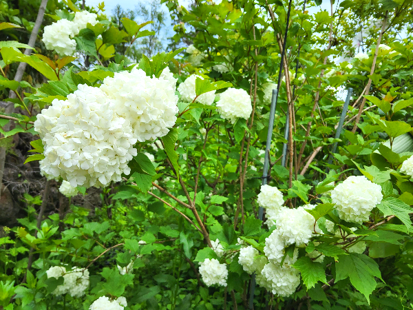4월에 피는 수국 불두화와 설구화는 꽃은 비슷하나 잎이 다르게 생겼다.